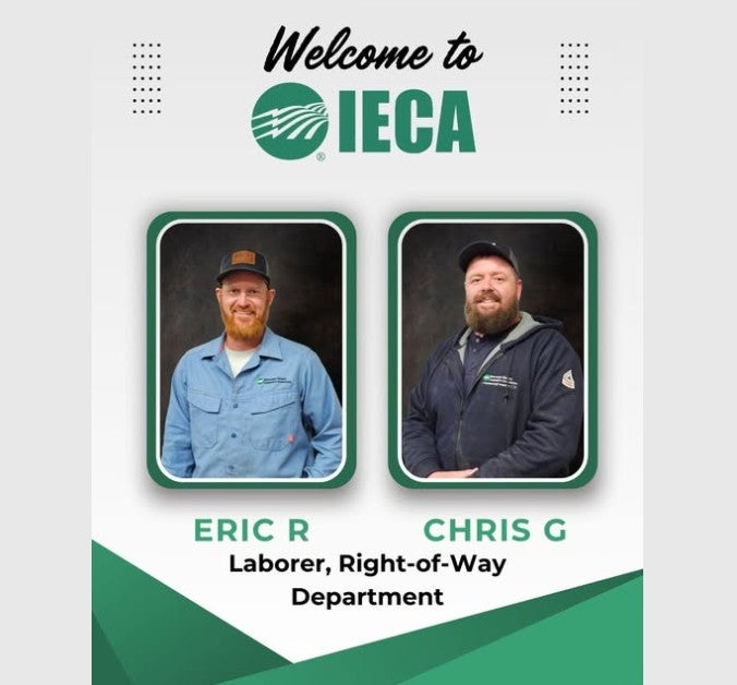 We would like to extend a big welcome to IECA's newest Right of Way crew members Eric Ross and Chris Giller who joined the IECA family March 23, 2026.